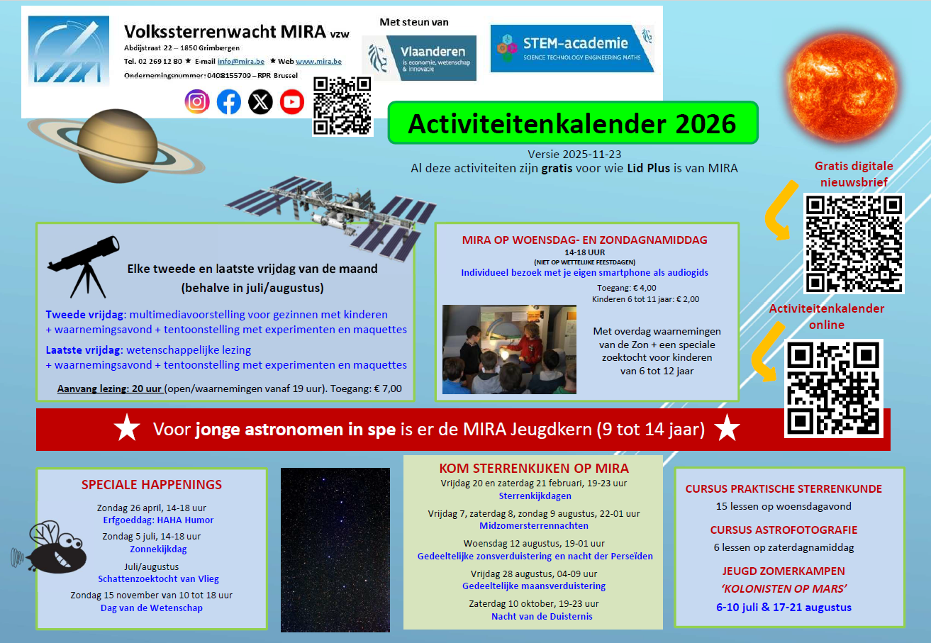 En volg Volkssterrenwacht MIRA ook op Facebook, X, Instagram en YouTube: