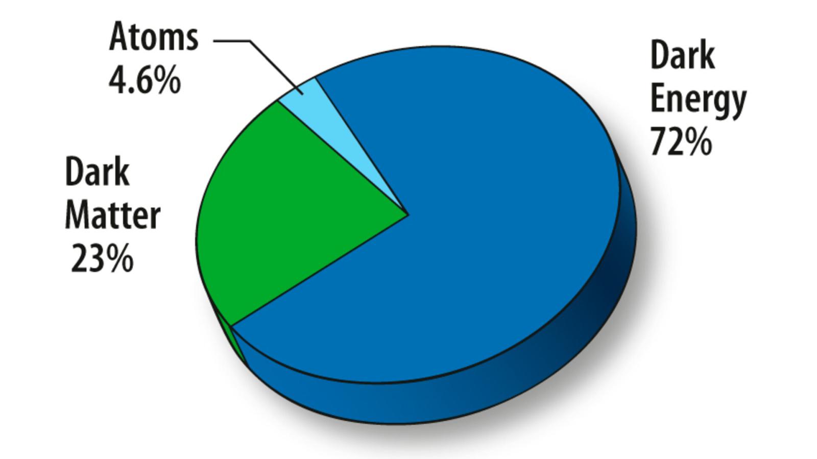 Nochtans blijkt uit onderzoek naar de samenstelling van het heelal dat deze ‘zichtbare’ materie minder dan 5% uitmaakt van wat het heelal bevat. Zowat 25% heelal wordt donkere materie genoemd en de resterende 70% staat voor donkere energie.